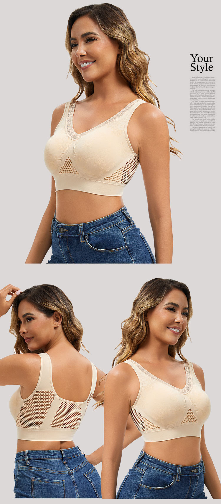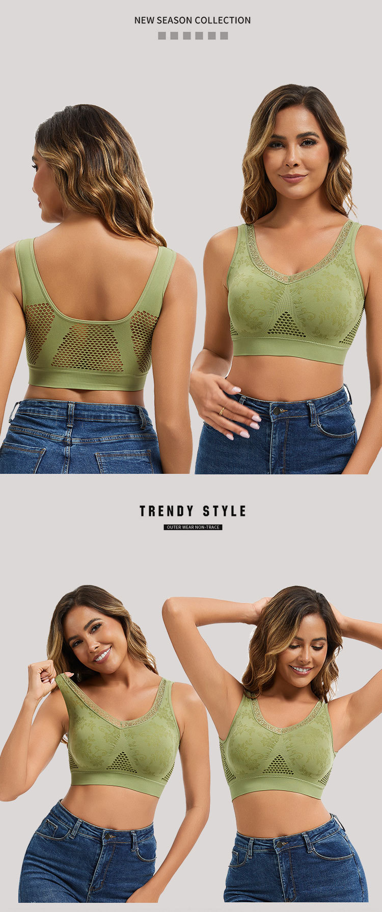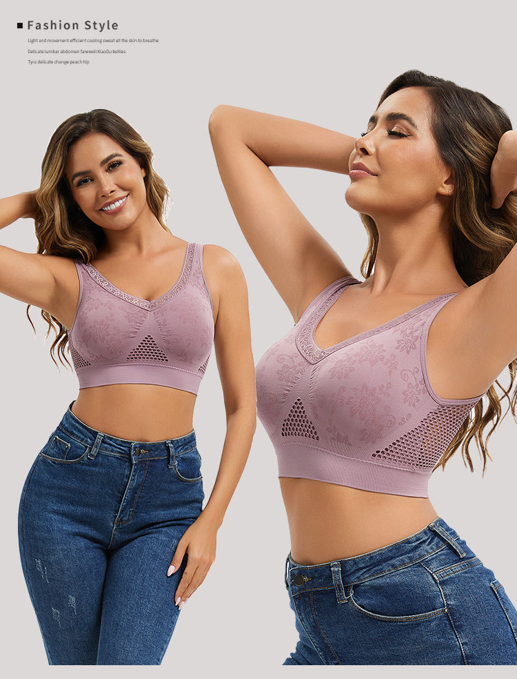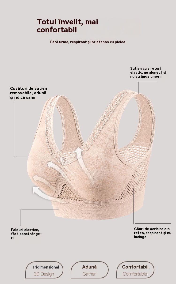 40–120 kg【Cumpără 1 și primești 1 gratuit】 Sutien din dantelă fără sârmă, cu susținere ridicată, pentru femei