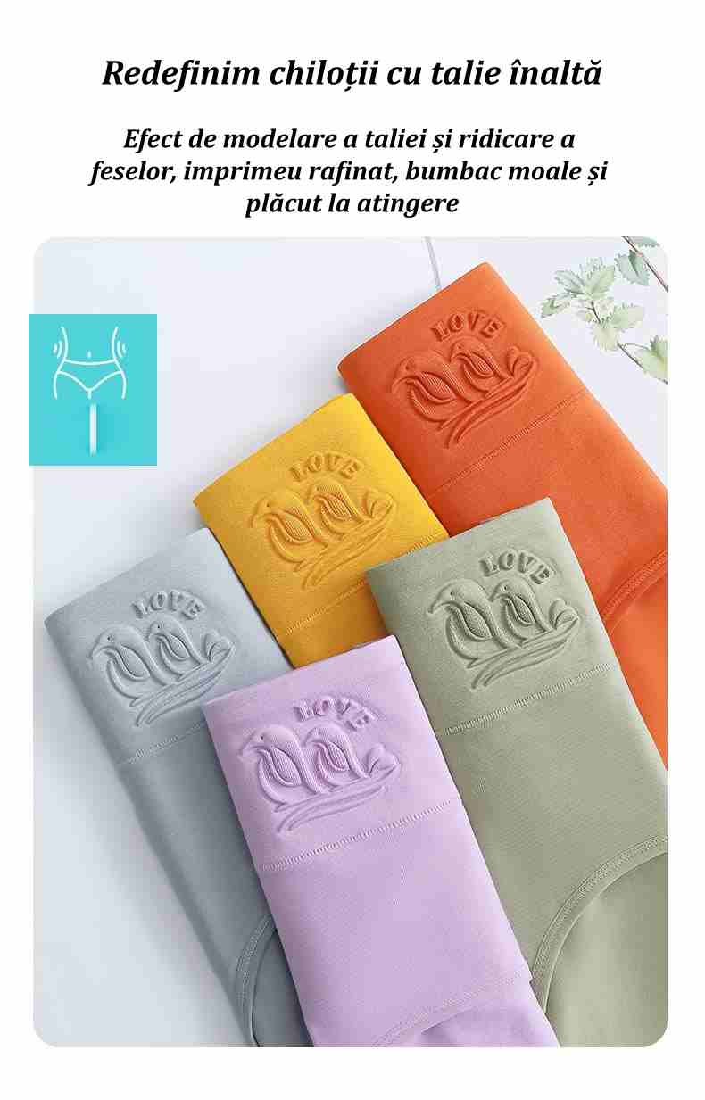 (6 bucăți) Lenjerie intimă feminină nouă, mărime mare, din bumbac pur, antibacteriană, cu talie înaltă și efect modelator pentru abdomen
