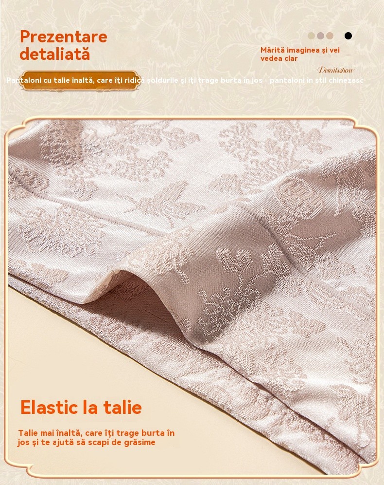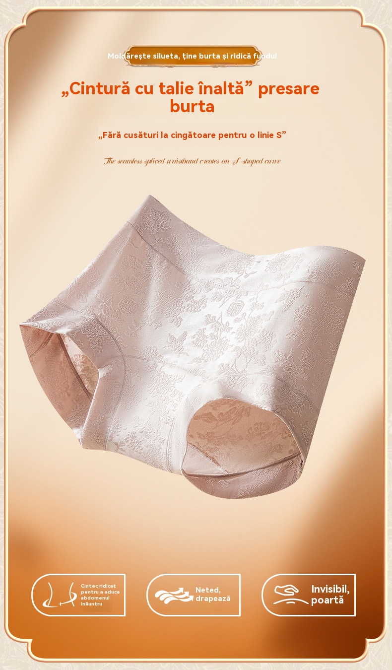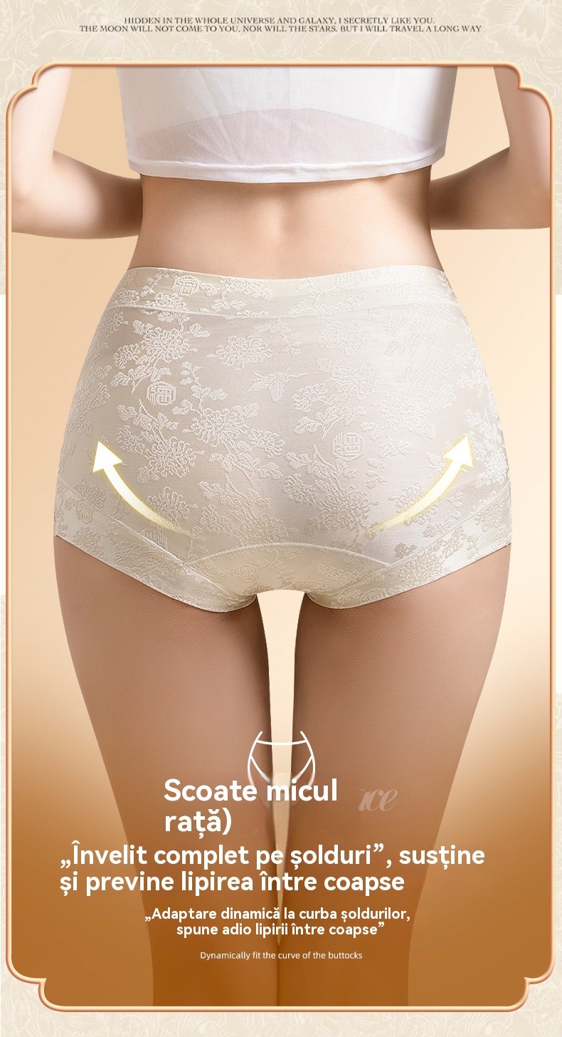 Chiloți dama tip triunghi jacard, cu talie înaltă, antibacterieni, din mătase de dud clasa 10A, cu efect de mărire a șoldurilor și subțiere a abdomenului, potriviți pentru 40–80 kg.