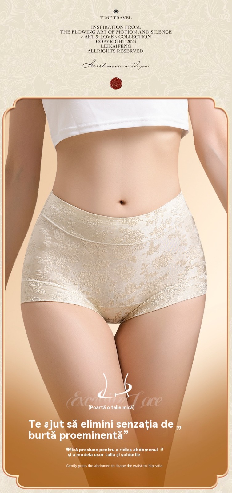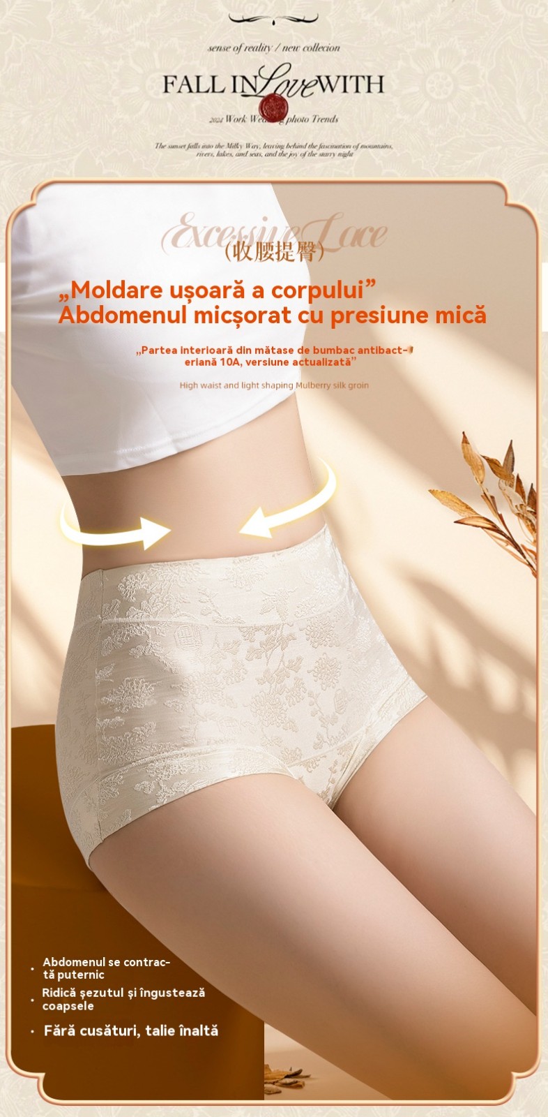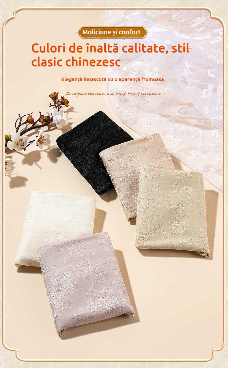 Chiloți dama tip triunghi jacard, cu talie înaltă, antibacterieni, din mătase de dud clasa 10A, cu efect de mărire a șoldurilor și subțiere a abdomenului, potriviți pentru 40–80 kg.